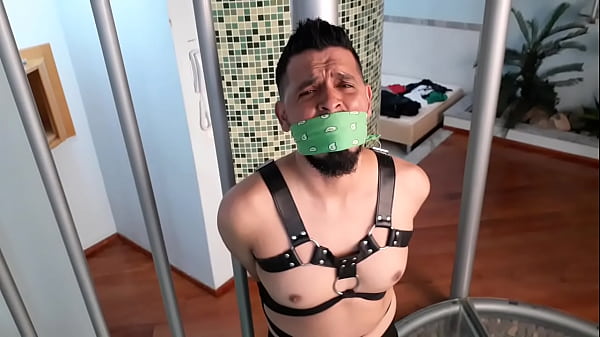 Mike Bebecito atado amordazado masturbándose por primera vez en: Vamos Mr Black 3 min