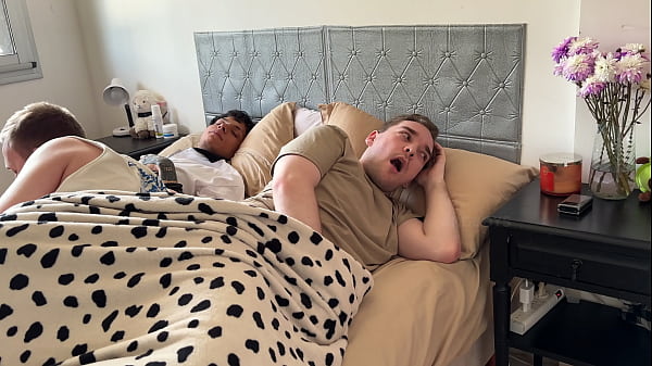 Fiesta de trío caliente con dos hermanastros twinks, doble mamada 71 seg
